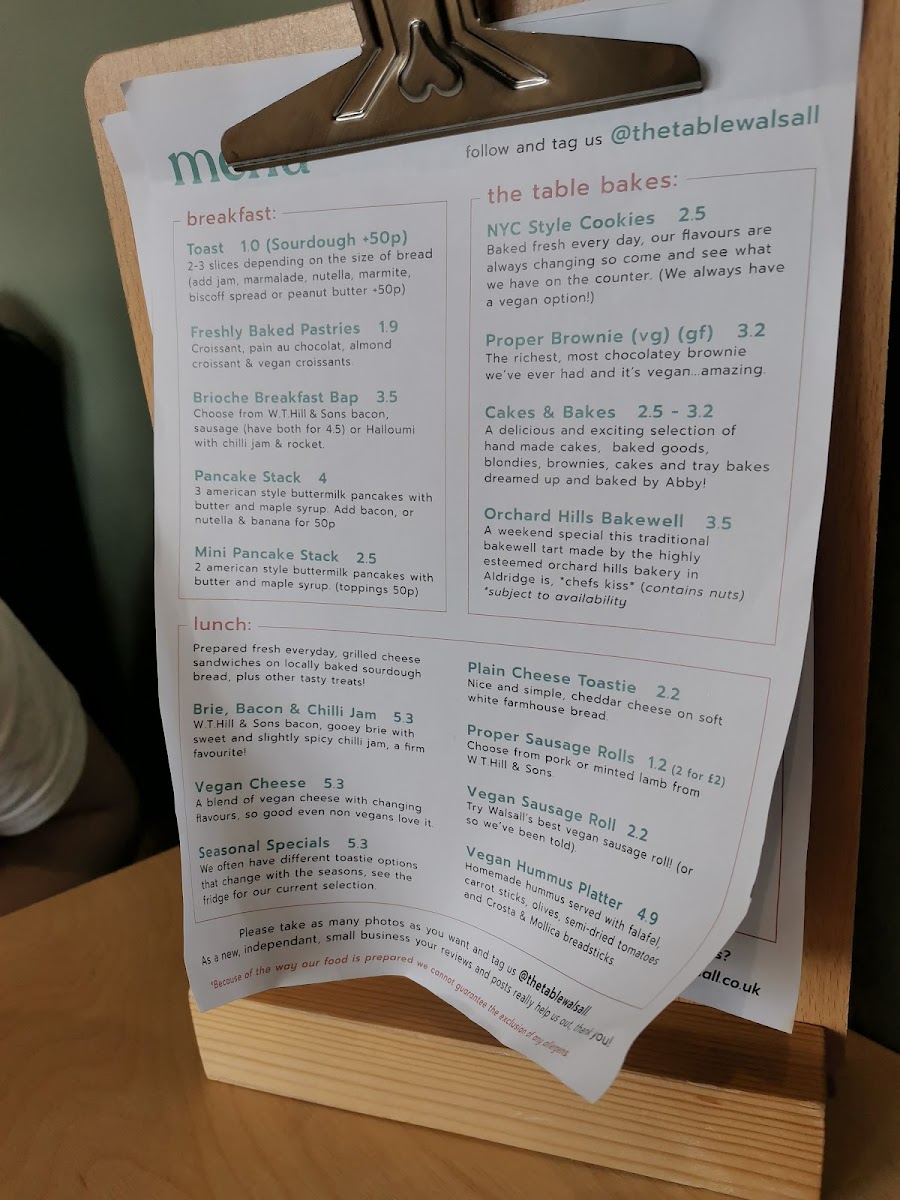 Located at 33 Lower Hall Ln in Walsall, The Table is a cozy café that serves as a vibrant community hub. Known for its delightful breakfast offerings like freshly baked pastries and loaded croissants, it also boasts a tempting selection of bakes, including NYC-style cookies and vegan brownies. The inviting atmosphere is perfect for first-timers and regulars alike. Customers rave about the friendly service and the beautifully presented dishes, such as cheesy loaded fries and the smooth lavender and honey coffee. With a strong focus on local crafts and community events, The Table ensures every visit is a memorable experience.